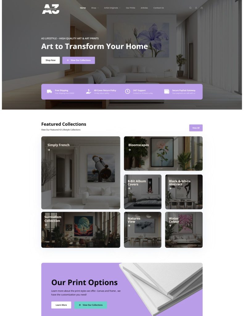 Home Website Design A3 Lifestyle – Website Design A3 Lifestyle – Website DesignMay 21, 2025Website Design E-Commerce Website Design – A3 Lifestyle Visit the website here : https://a3lifestyle.co.za/